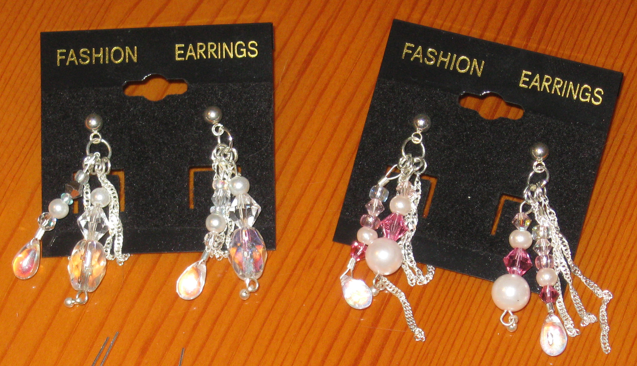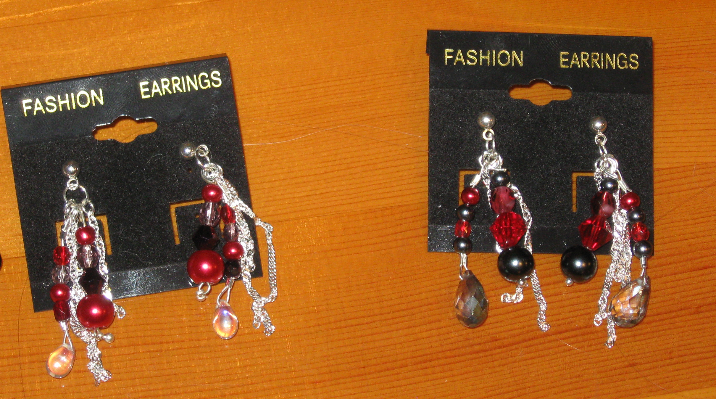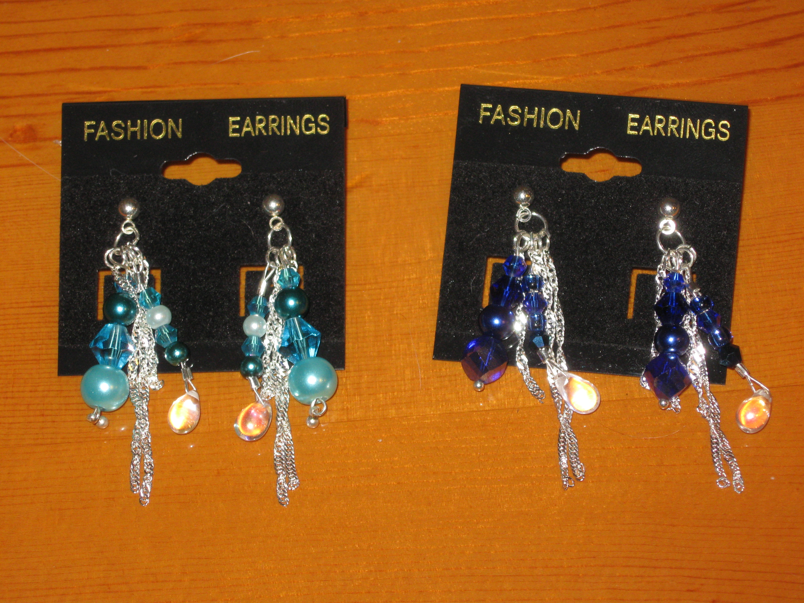 These pretty earrings are made to match our Tiered Shimmer Necklace, but will look great on their own as well. Made with crystal and glass beads and three metal chains of varying lengths, these earrings will dangle and sway, catching the light wherever you go. All metals used in these earrings are low- or no nickel, so order without worry!